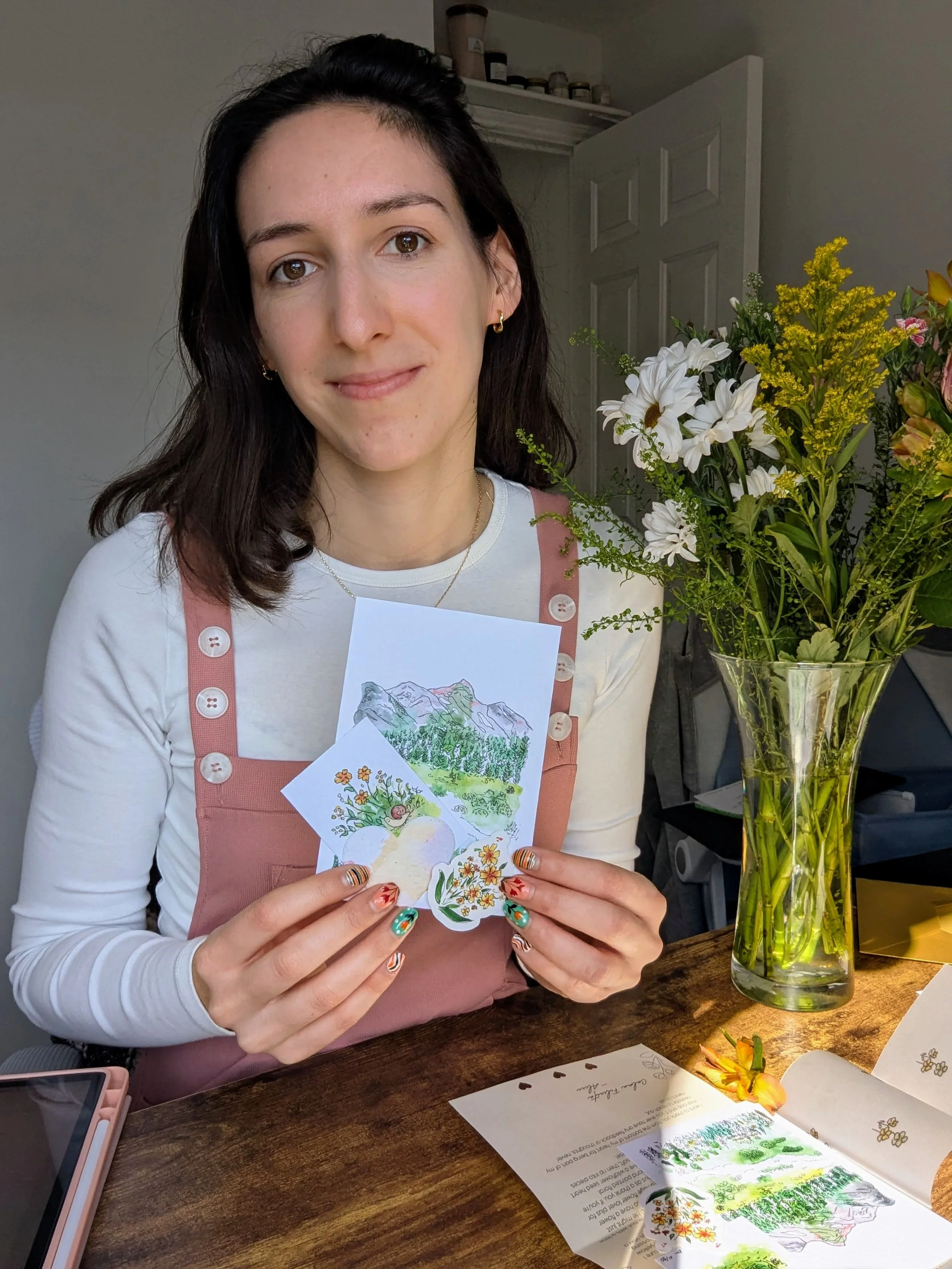 Whether it’s through a print, a commission, or a piece of mail arriving through your door, I hope my work brings a small moment of peace and happiness into your day.